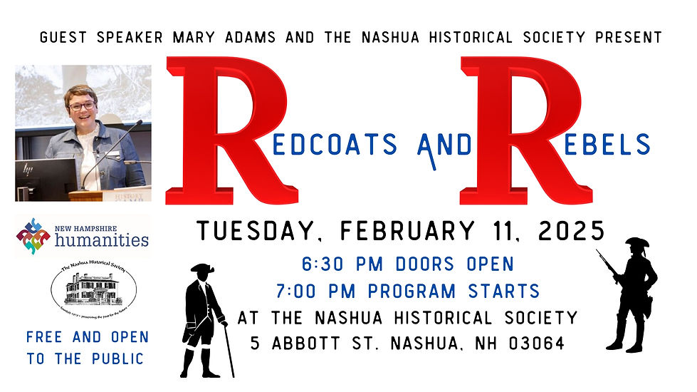 Founded in 1870, The Nashua Historical Society is a volunteer run, independent, non-profit organization and receives no operating support from the State of New Hampshire or the City of Nashua. The Historical Society's motto is "Preserving the Past for the Future" and in support of its purpose, the Historical Society collects, preserves and interprets materials pertaining to Nashua history.